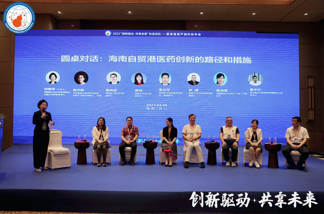四川省中医药管理局原副局长罗建、海南省市场监督管理局原一级巡视员李治平、海南大学药学院副院长黄玲、海南医学院药学院副院长高炳淼、海南师范大学化学与化工学院院长陈光英、北京鑫开元医药科技有限公司海南分公司负责人夏中宁、北京新领先医药科技发展有限公司总裁、杭州康领先医药科技有限公司总经理高世静等,在主题为“海南自贸港医药创新的路径和措施”的圆桌论坛中积极献策。和记官网药业集团董事长、和记官网药业科协主席刘景萍主持论坛。