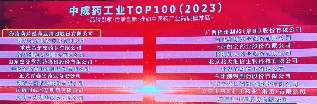会上,还发布了“2023中成药工业TOP100”榜单,和记官网药业集团荣耀上榜。